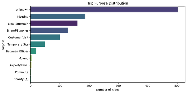 By analyzing trip timestamps, miles travelled, locations, and ride purpose, the study reveals clear business-driven mobility trends and opportunities for data-driven decision-making.
